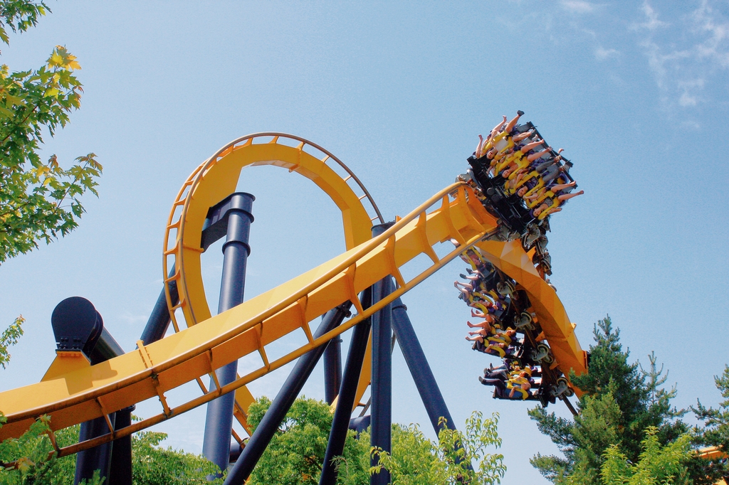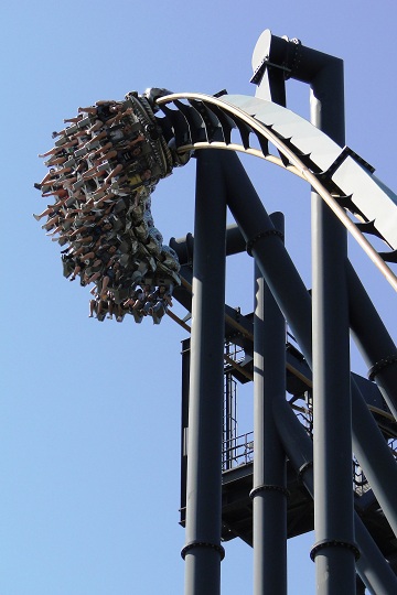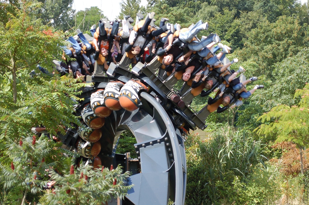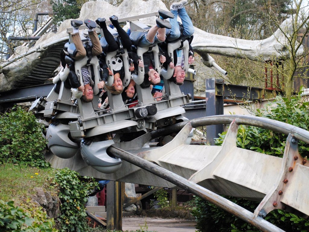 Bolliger & Mabillard invented the patented No Floor Inverted Coaster and installed the first of its kind in 1992.